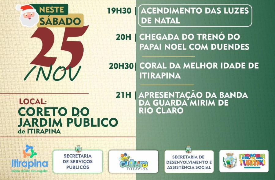 Neste sábado, 25 de novembro, acontecerá o Natal Mágico! Confira a programação! Principal / Notícias /