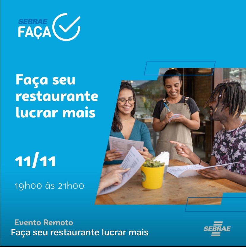Faça seu restaurante lucrar mais “Impulsione a lucratividade do seu restaurante agora! Desvende os componentes essenciais para formar preços de venda eficazes. Aprenda a calcular mão de obra direta, materiais e custo unitário de serviços, aproveitando estratégias de markup. Com um estudo de caso prático, você estará pronto para alcançar novos níveis de sucesso financeiro em seu restaurante. Eleve sua rentabilidade e conquiste o mercado gastronômico!” Evento gratuito e para *maiores de 18 anos*! 📅 Data: 11/11/2024 – 19:00h às 21:00h *EVENTO ON-LINE* Faça a sua inscrição agora mesmo, as vagas são limitadas! 👇👇 https://empreendarapido.sebraesp.com.br/produto/turma/pj/32465612