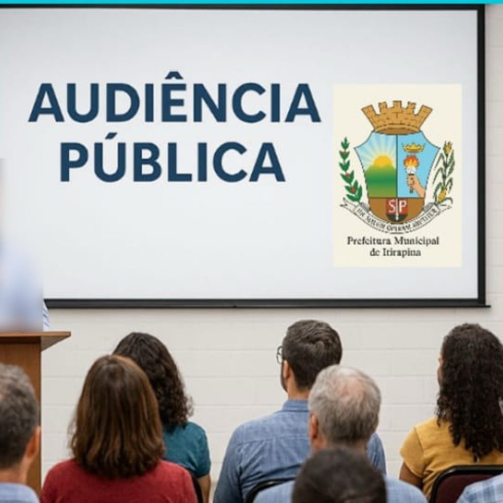 A Prefeitura Municipal de Itirapina convida a população para a Audiência Pública do Plano Plurianual (PPA) 2026–2029, que será realizada na próxima segunda-feira, 30 de junho, às 18h, na Câmara Municipal (Rua 03, nº 67 – Centro).